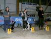 Large für Dortmund waren anwesend. Ein genereller Unterschied, auch in den Leistungsklassen A1 und A2 war doch festzustellen : es wird mehr und schneller gerannt als bei uns und die Hunde werden im Parcours pausenlos motiviert durch lautstarkes, mehrfaches Ansagen des nächsten Hindernisses. Das ist natürlich auch ein Stück südliches Temperament. Ferner scheint man in Italien sehr großen Wert auf Basistraining zu legen. Fast alle Teams, auch in der Leistungsklasse A1, hatten keine Probleme mit kniffligen Stellen wie z. B. 'Außen', also über eine Hürde, dann abbiegen und die im Winkel von 90 Grad stehende Hürde von Außen springen. Die HF blieben innen und auf das Kommando 'Gira' arbeiteten die Hunde solche Stellen selbstständig ab. Ebenso wie zwischen zwei Hürden durch kommen. Kontaktzonen und Slalomeingänge eigentlich wie bei uns, kein Unterschied.