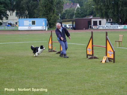 und daß also der Hund angeleint zum und vom Parcours geführt werden muß. Tatsächlich
