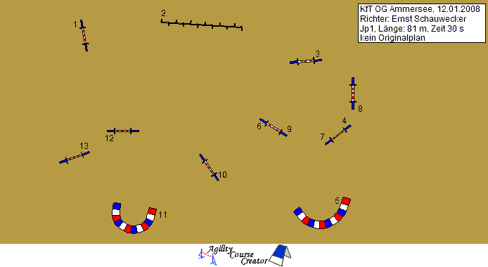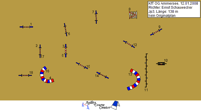 die gleiche Geräteanordnung wie im Jumping3-Parcours, nur mit unterschiedlichem Weg